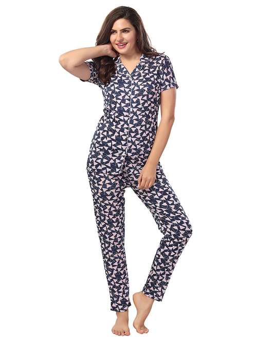 - After a long tiring day, slip into something homely, shop for the all-new collection of nightwear sets for ladies in M sizes and gorgeous navy blue designs and colors.