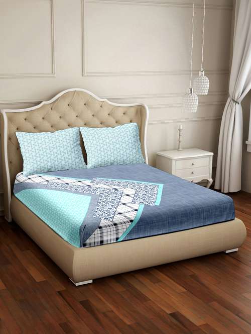 vogue double bedsheet set super king size 100% luxury cotton blue colour