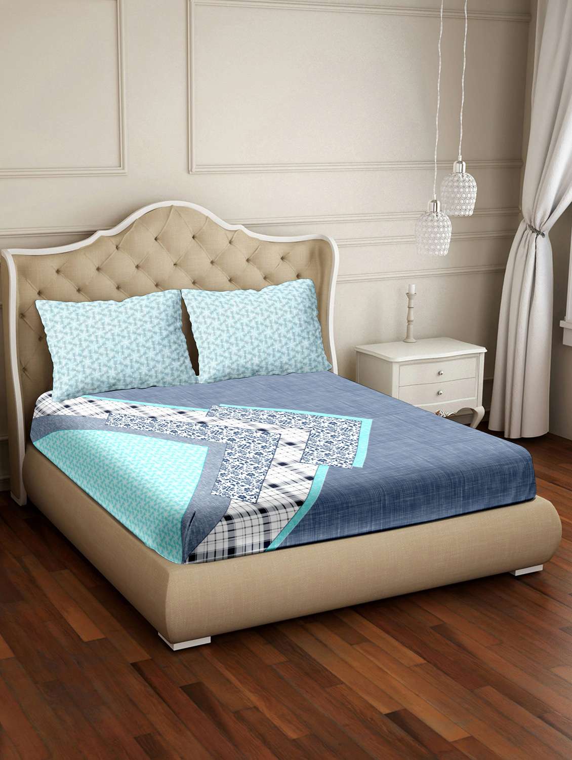 vogue double bedsheet set super king size 100% luxury cotton blue colour - 17791808 - Very Small Image - 1