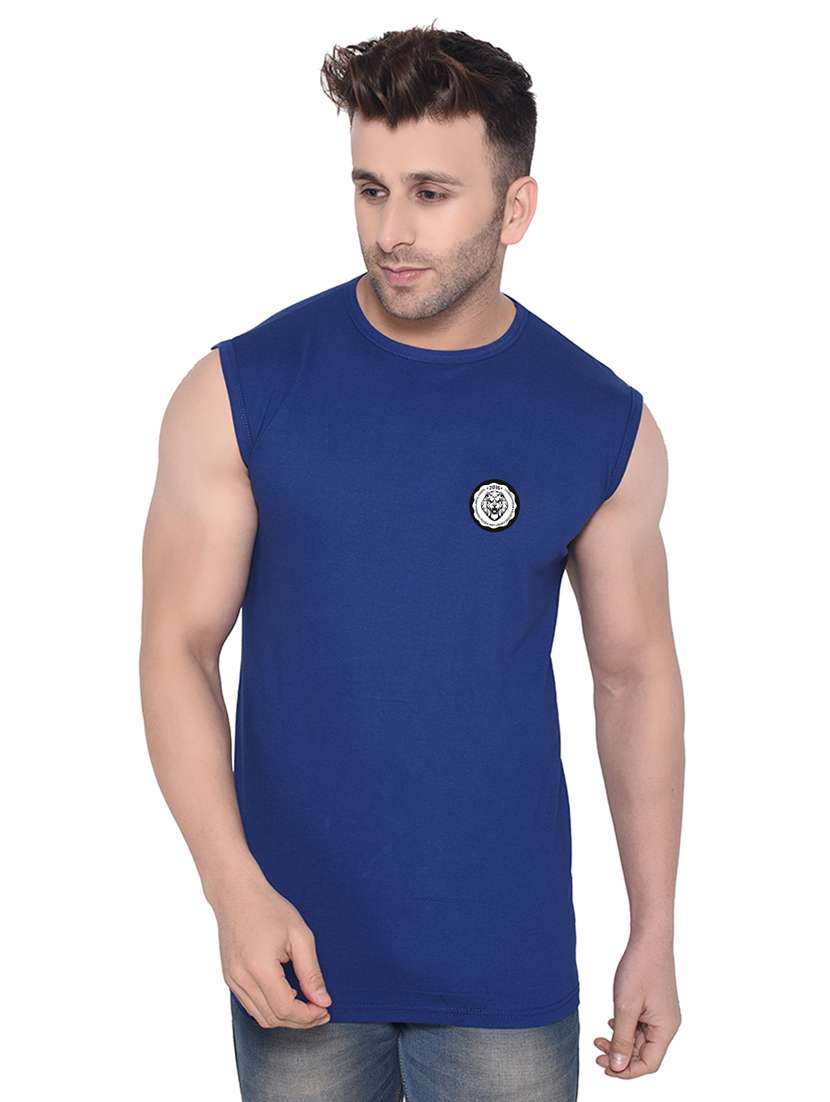 - » blue solid cotton blend t-shirt