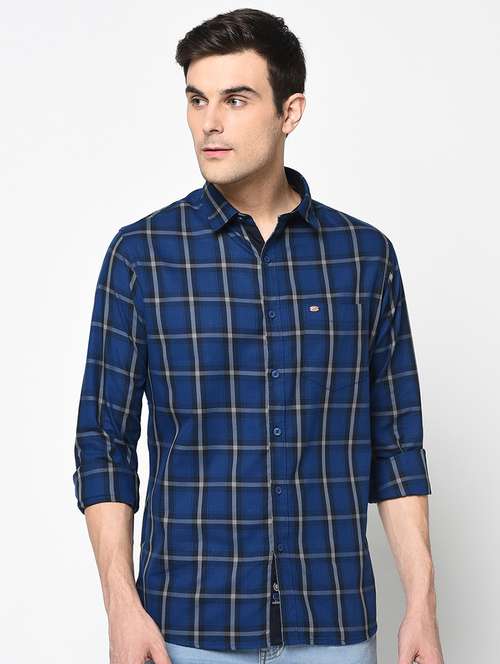 navy blue checkered casual shirt - 17535763 - Very Small Image - 1