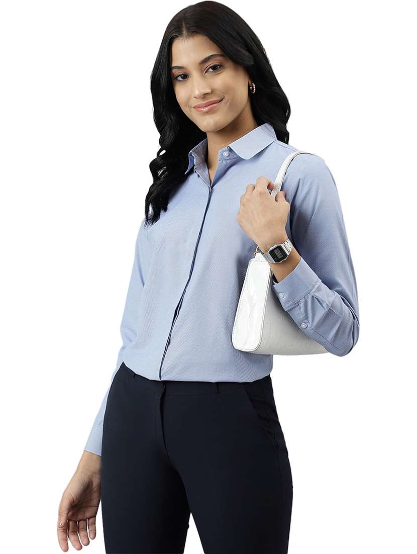 - » women solid collared long sleeve shirt