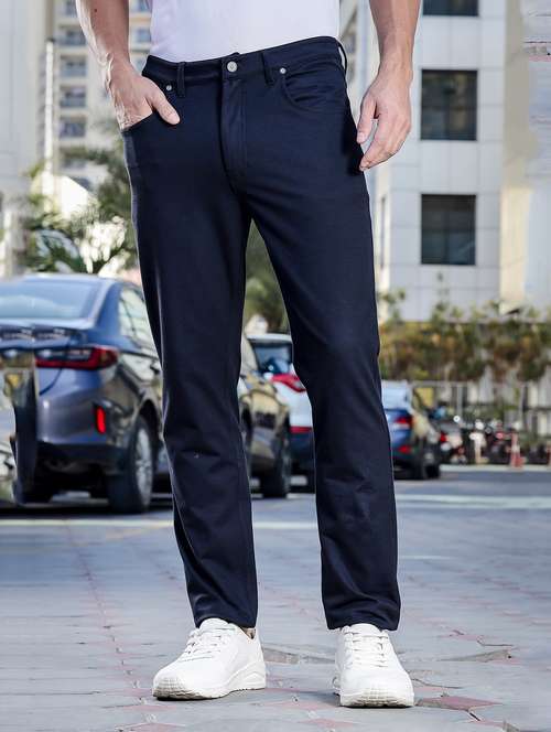 One Sky Men Blue Solid Relaxed Fit Trouser