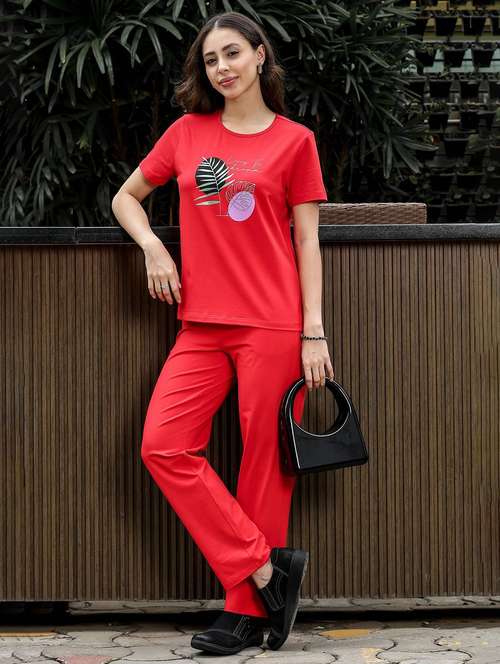 - » women printed short sleeve t-shirt & trouser co-ord set