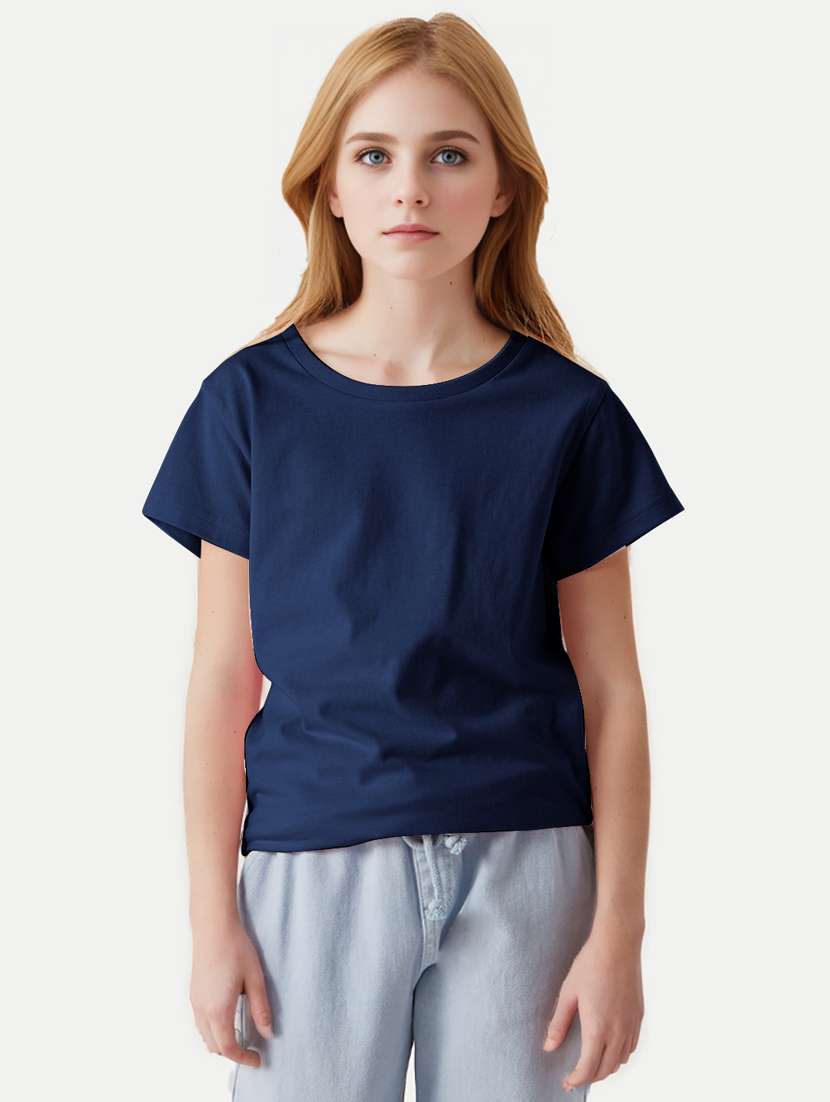 girls solid round neck tee
