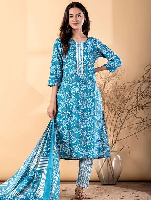 - Find gorgeous sets of ethnic wears in trending designs in blue colors suitable for festive wear of occasions.