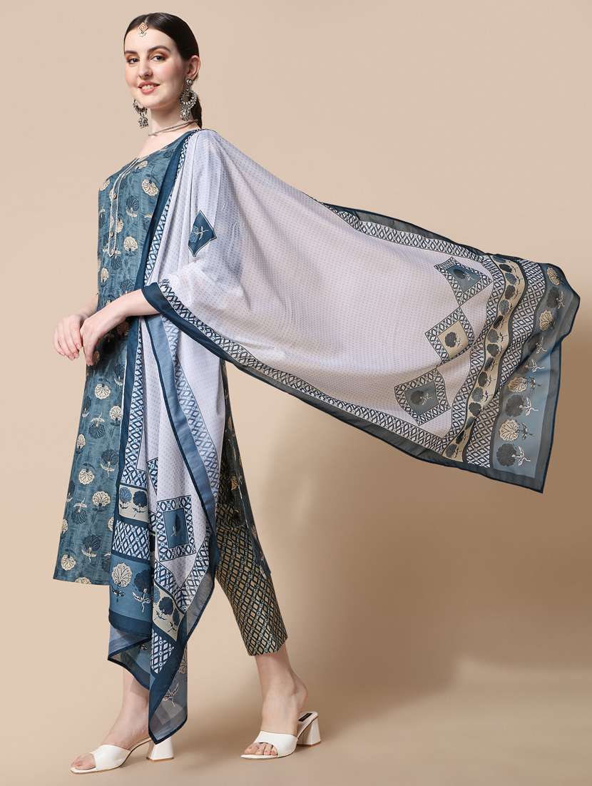 women printed three quarter sleeve kurta pant with dupatta set - 22282108 - Very Small Image - 1