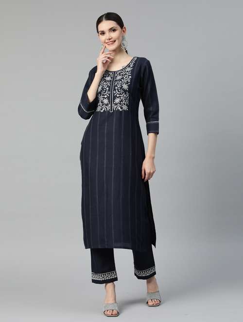 - Find gorgeous sets of ethnic wears in trending designs in navy blue colors suitable for casual wear of occasions.