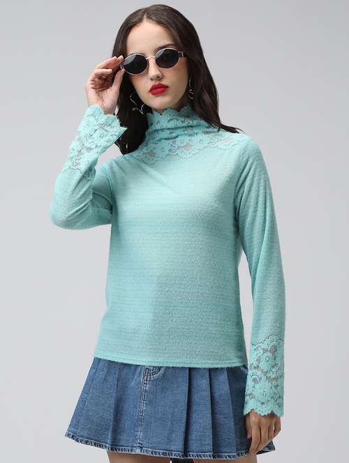 - » women solid mock neck long sleeve pullover