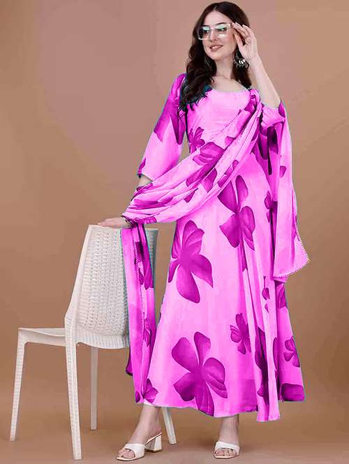 - » women floral printed long sleeve kurta dupatta set