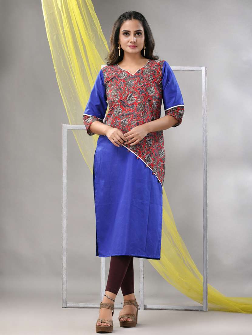 - » women blue cotton straight kurta
