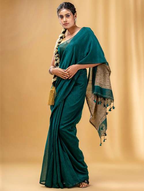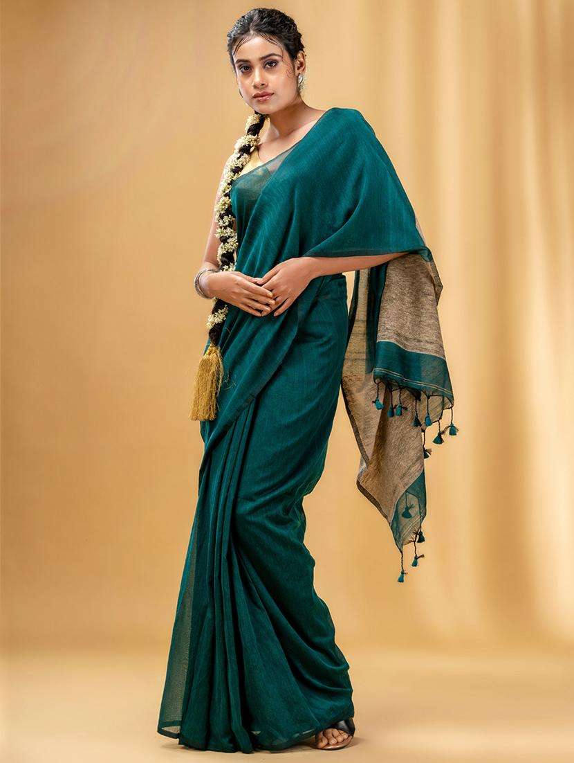- » women solid handloom saree with blouse