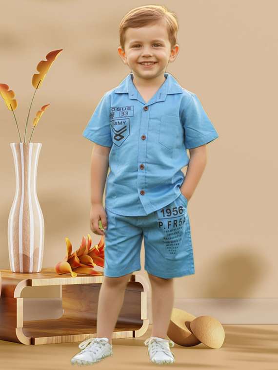 - » boys printed shirt and shorts co-ord set