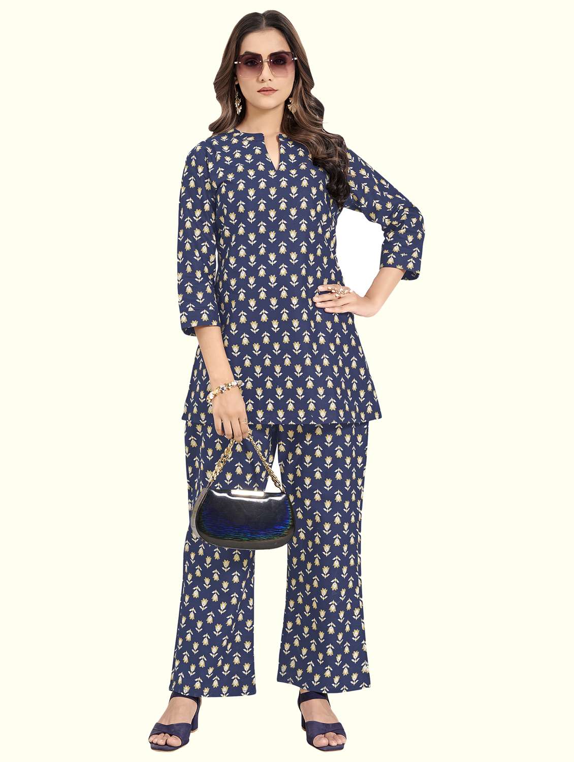 - » women floral three quarter sleeve ethnic co-ord set
