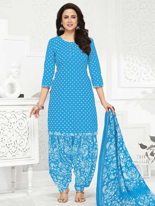 - Find gorgeous sets of ethnic wears in trending designs in blue colors suitable for casual wear of occasions.