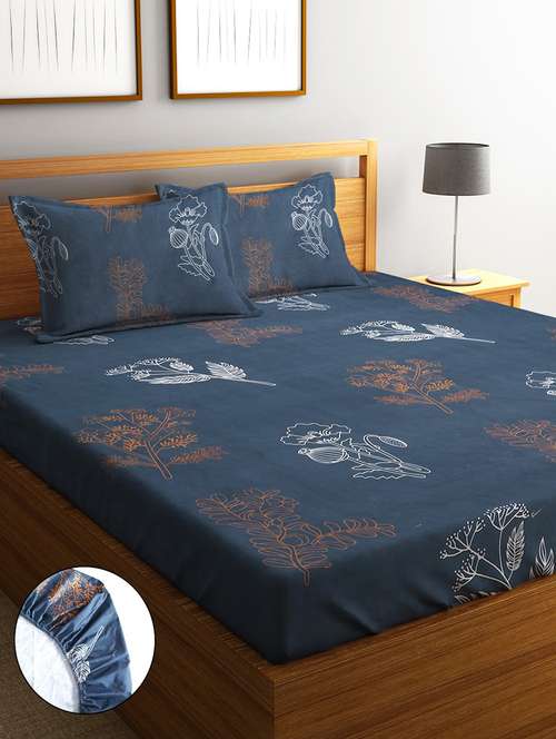 home sizzler 210tc midnight bloom elastic fitted double bedsheet (72x78 inch) with 2 king size pillow covers - 21697038 -  Standard Image - 1 home sizzler 210tc midnight bloom elastic fitted double bedsheet (72x78 inch) with 2 king size pillow covers - 21697038 -  Zoom Image - 1