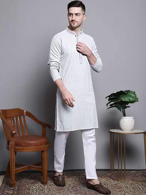 - » men embroidered mandarin neck kurta pyjama ethnic wear set