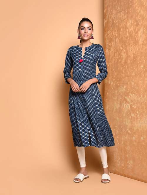 indigo printed a-line kurta
