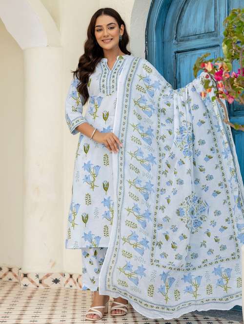 - Find gorgeous sets of ethnic wears in trending designs in blue colors suitable for casual wear of occasions.