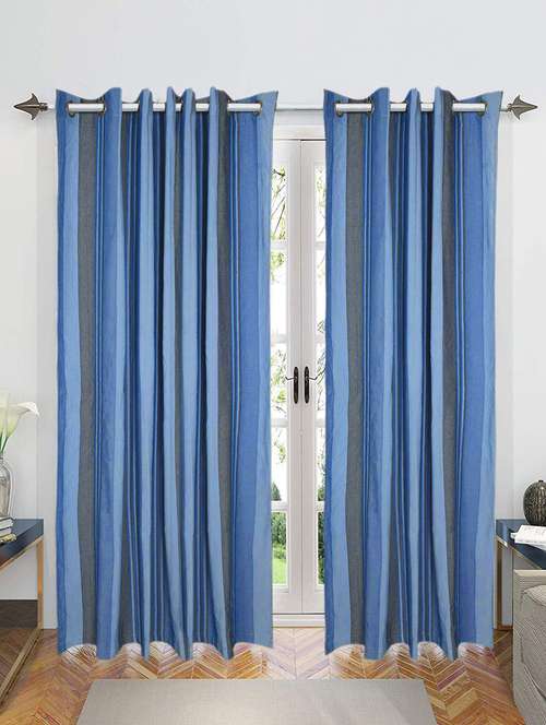 saral home cotton striped grommet eyelet door curtain, 4x9 feet, blue, pack of 2