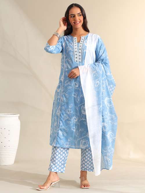 - Find gorgeous sets of ethnic wears in trending designs in blue colors suitable for casual wear of occasions.