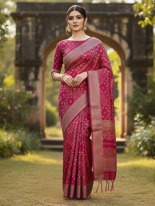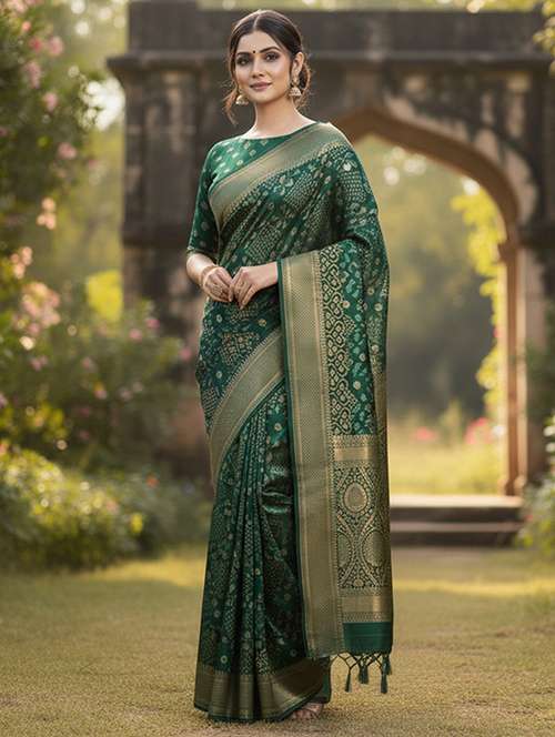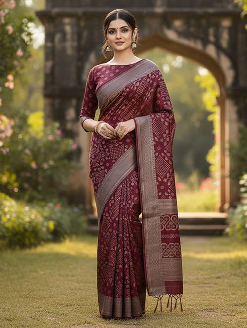 Blue colored saree made from cotton silk fabric, highlighted with elegant ikkat prints. It comes with an unstitched cotton silk blouse piece that can be customized as per your style. Perfect for festive occasions and traditional functions.