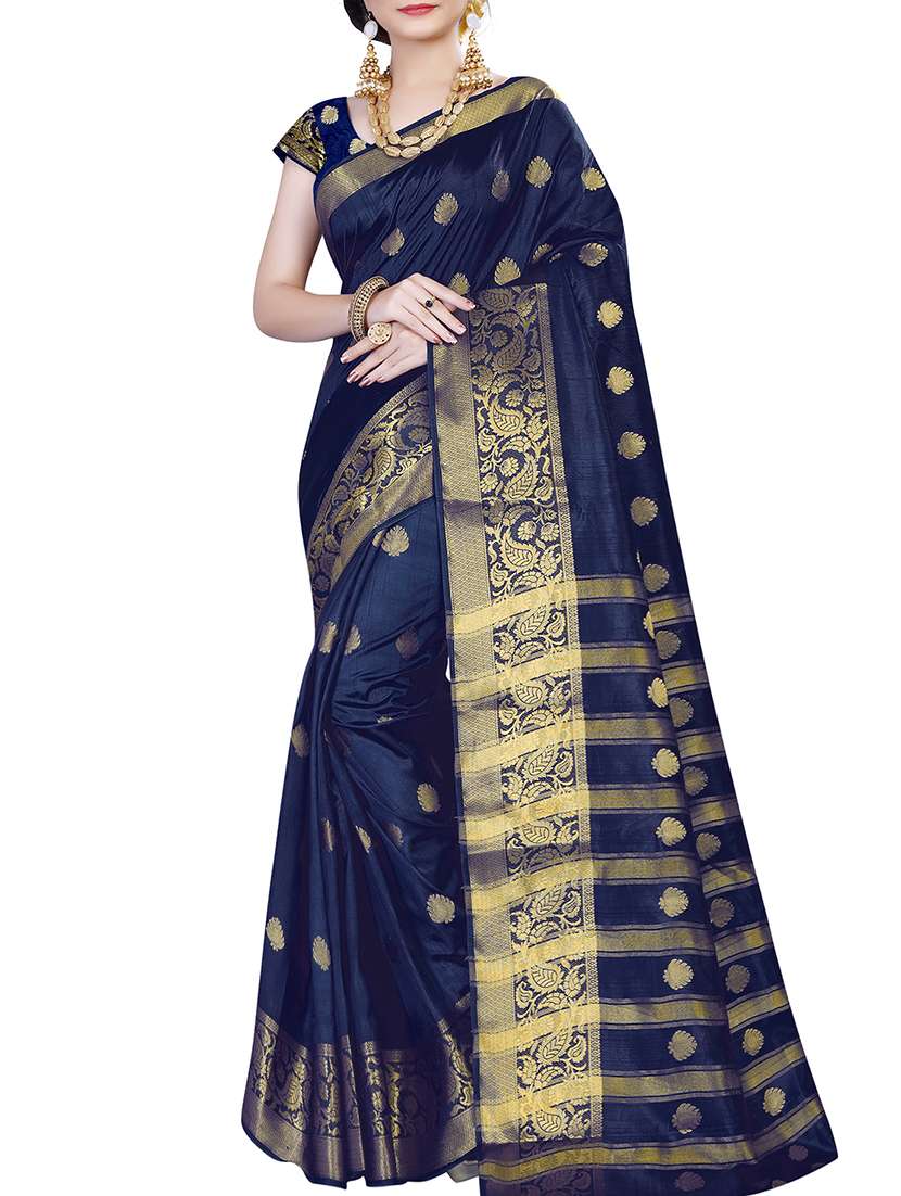- » floral zari motif navy blue kanjivaram saree with blouse