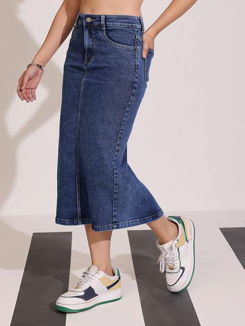 - Is it time taking to find a good comfy skirt? Well, get your skirts in denim fabrics and in calf lengths.