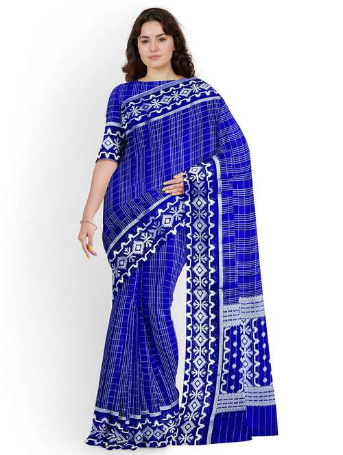 women checkered bordered saree with blouse