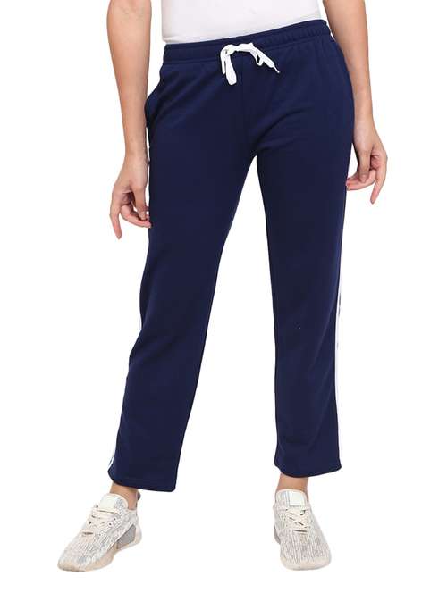 - » women navy blue side taped track pant