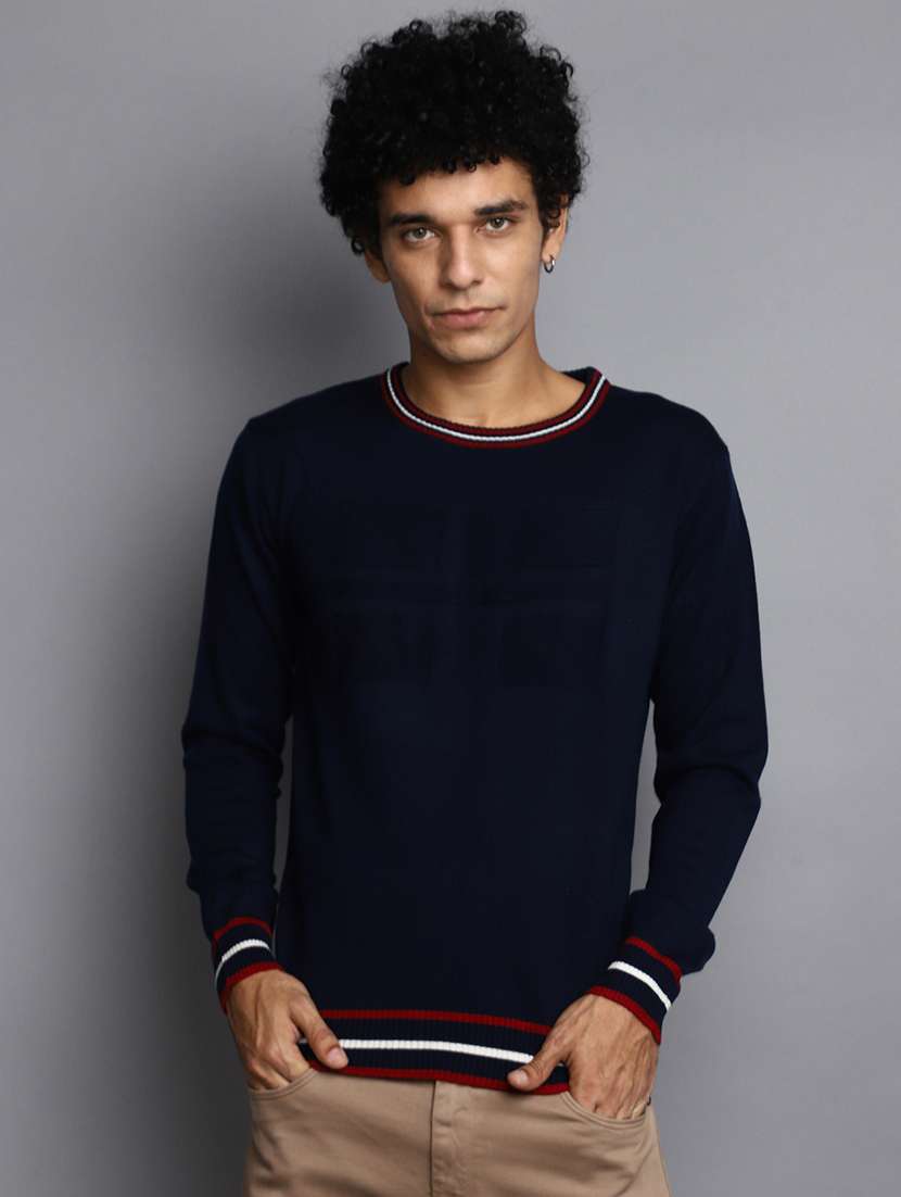 men solid crew neck pullover