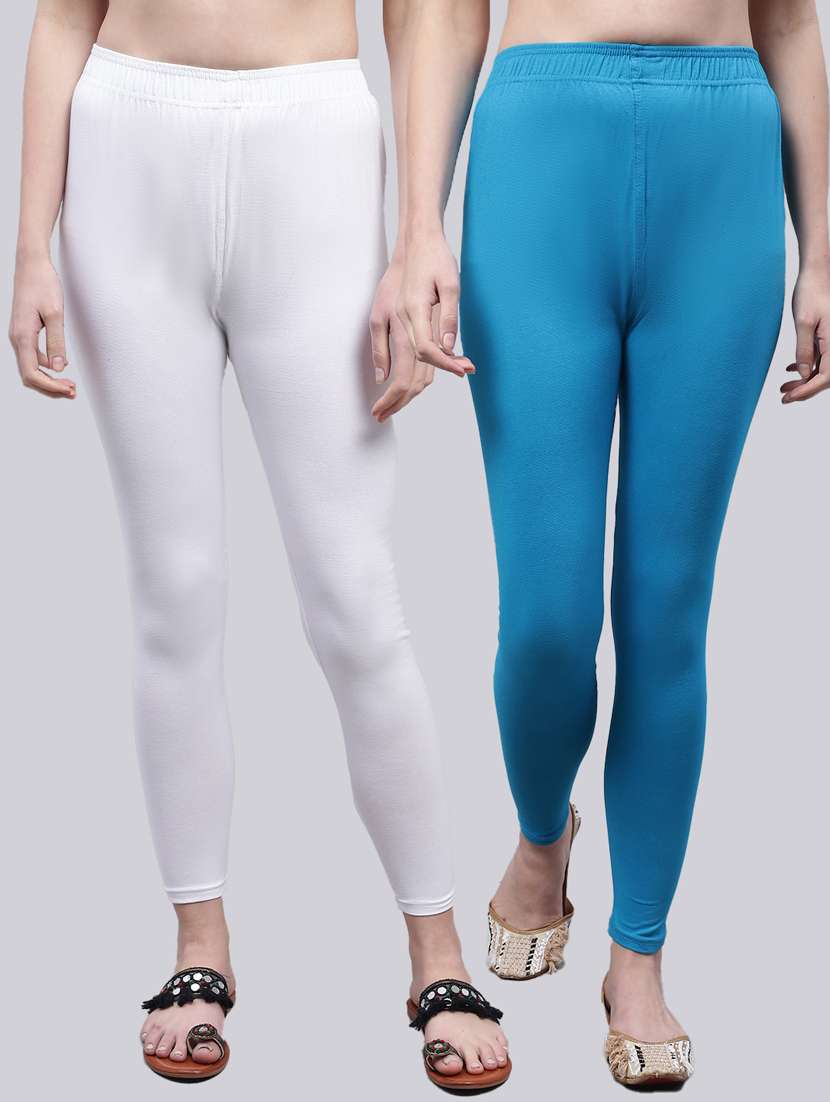 Upgrade your collection of warm-weather staples with these Solid Leggings combo (white & Ferozi) by Valles365. Pair them with a flowy tee and lace-up sandals for a super chic look.