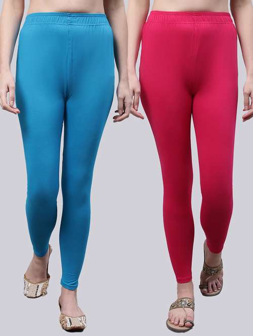 Upgrade your collection of warm-weather staples with these Solid Ferozi and Dark Pink Leggings combo by Valles365. Pair them with a flowy tee and lace-up sandals for a super chic look.