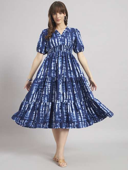 women tie & dye v neck tiered dress - 22308177 - Very Small Image - 1