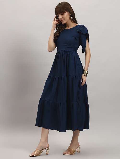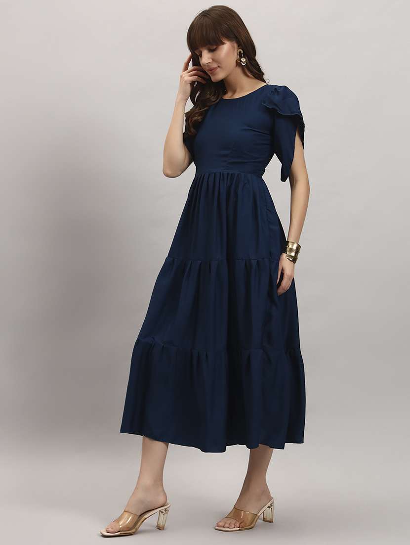 women solid tulip sleeve tiered dress