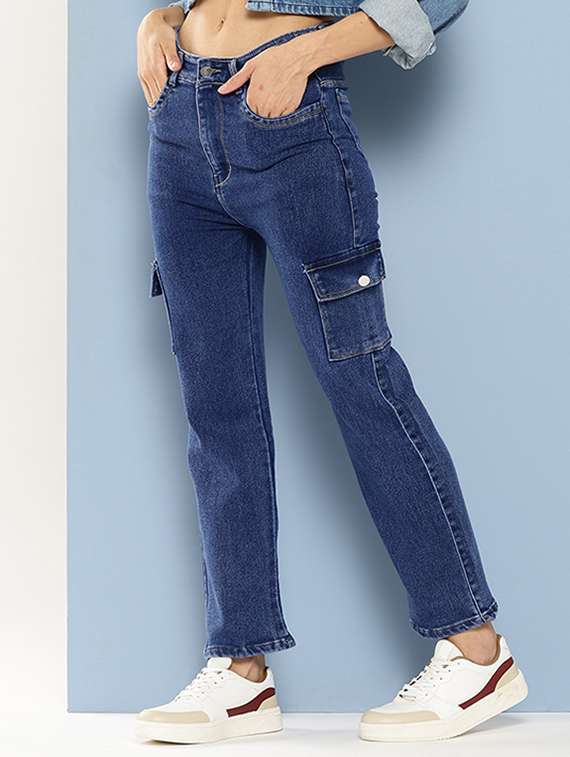 - » women solid mid rise denim cargo