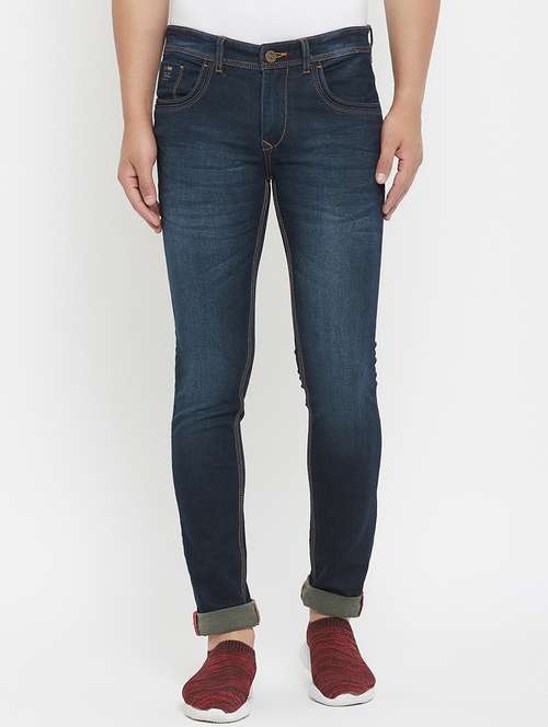 dark blue washed denim jeans