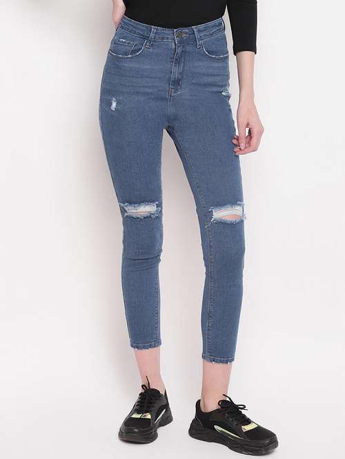 high rise knee slit jeans