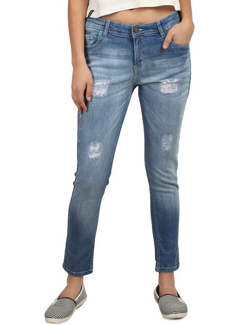 - » high rise distressed jeans