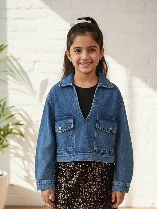 girls collared long sleeve denim jacket