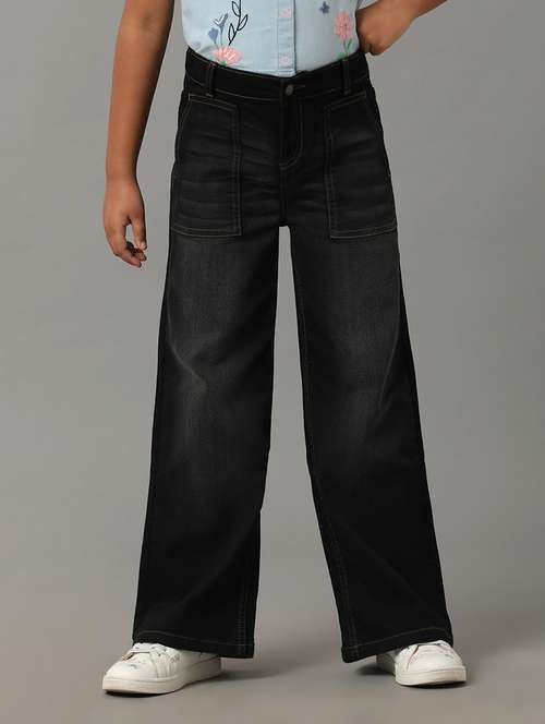 girls solid mid rise wide leg jeans