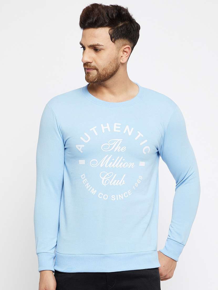 blue coloured printed sweatshirt