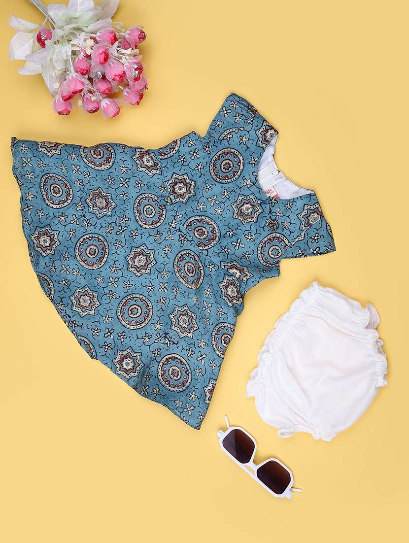 - » girls printed round neck frock with bloomer