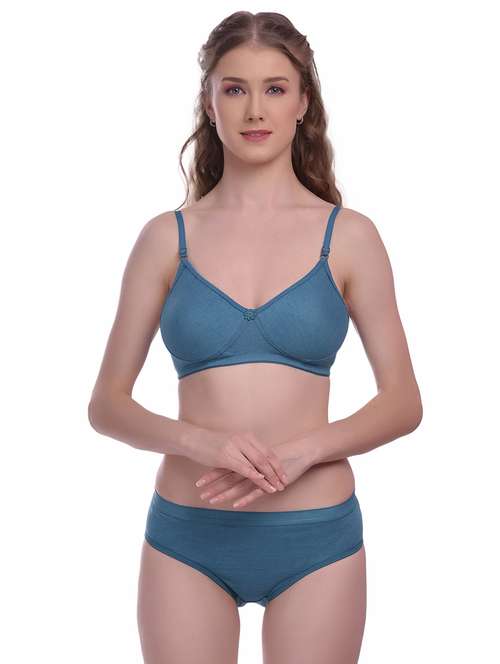 blue solid bra and panty set