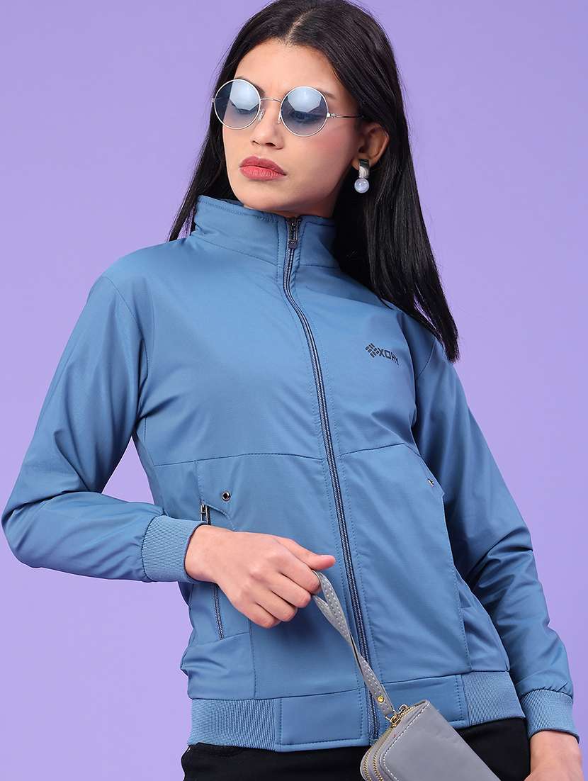 women solid long sleeve bomber jacket