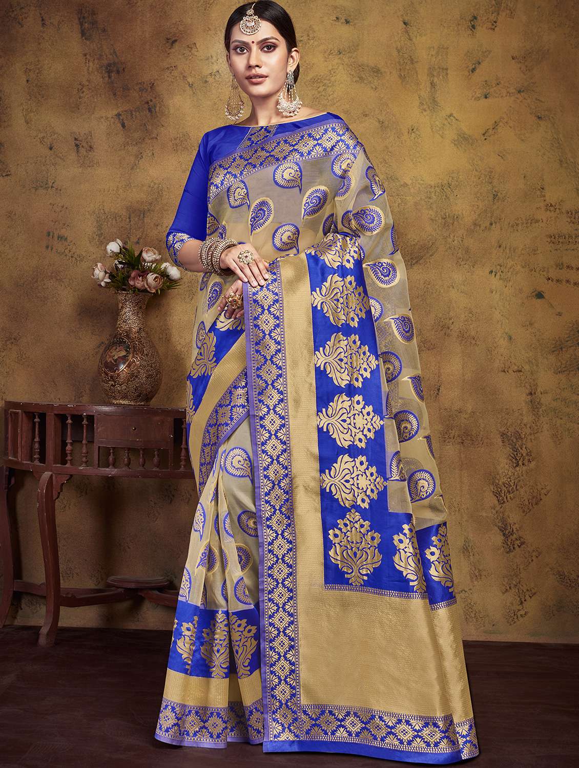 self design kanjivaram saree with blouse - 16793092 - Very Small Image - 1