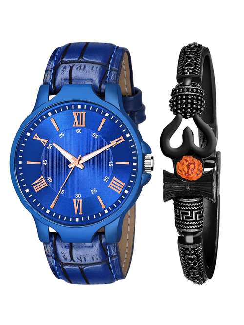 - » kajaru new fancy stylish - blue leather strap & mahadev bracelet combo watch