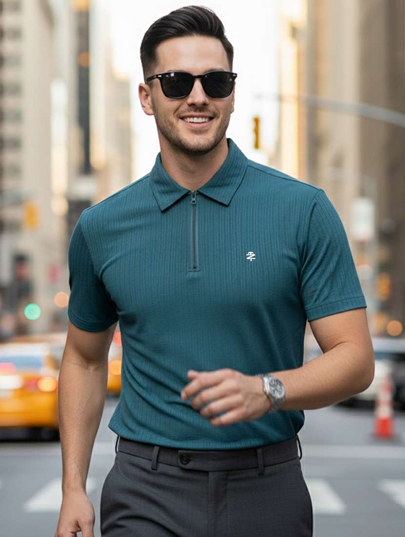 TEENZZI Men's Imported Lycra Half Sleeve Solid Polo Neck T-shirt