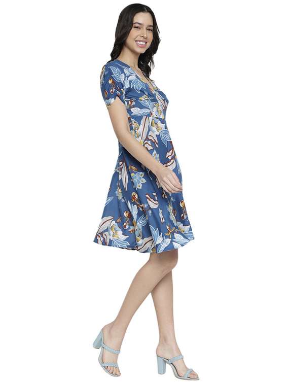 Embrace effortless elegance with our Women's Crepe Fit and Flare Midi Dress. This dress, designed to flatter your figure, showcases delightful v- neck and half sleeve, creating a perfect fusion of sophistication and comfort. Crafted from premium polyester fabric for a soft and lightweight feel, this stylish western wear dresses for women exudes sophistication in vibrant prints, making it easy to dress up or down for various ocassions. Ideal for both casual outings and semi-formal gatherings, you can pair this dress with sandals for a laid-back appearance or elevate it with heels and minimal accessories for a touch of sophistication. Whether at the office, a brunch date, party or a social gathering, this dress stands out as a flexible wardrobe essential, offering a perfect combination of style and comfort. Elevate your fashion with this timeless piece that exudes grace and allure.