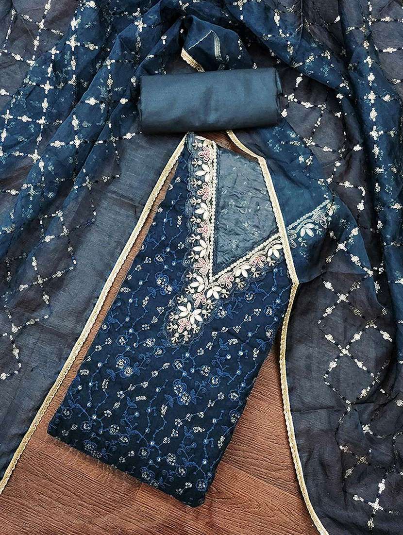 women solid with work embroidered unstitched suit set - 22184100 - Very Small Image - 1